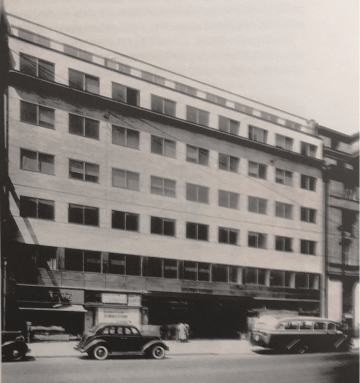Dům sestávající ze tří šestipatrových křídel patří k největším funkcionalistickým novostavbám v centru Prahy. Byl postaven podle projektu architektů Bohumíra Kozáka a Antonína Černého v letech 1936–1938. Zpočátku sloužila budova pro potřeby italských spořitelen a v části se nacházely byty. V suterénu bylo vybudováno kino, v současnosti je zde muzikálové Divadlo Broadway. Po roce 1980 byla budova upravena k administrativním účelům.